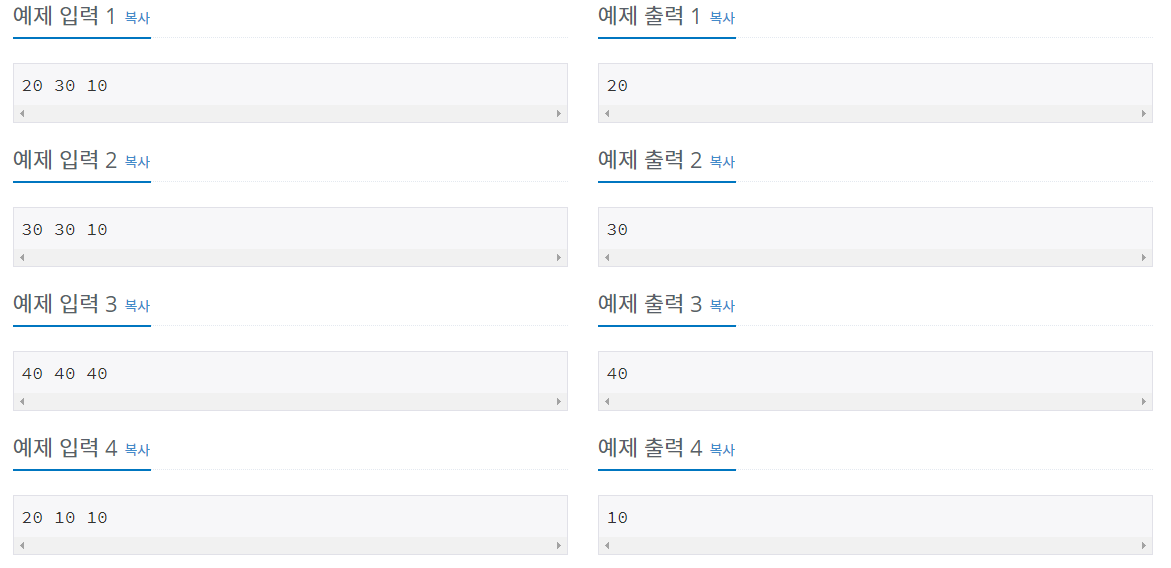 세 정수 A, B, C가 주어진다. 이때, 두 번째로 큰 정수를 출력하는 프로그램을 작성하시오.