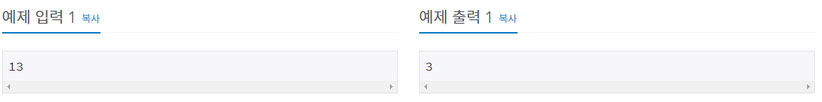 입력으로 주어진 방까지 최소 개수의 방을 지나서 갈 때 몇 개의 방을 지나는지 출력한다.