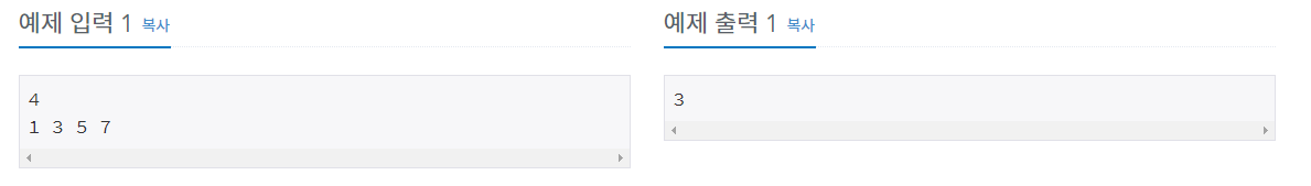 첫 줄에 수의 개수 N이 주어진다. N은 100이하이다. 다음으로 N개의 수가 주어지는데 수는 1,000 이하의 자연수이다.