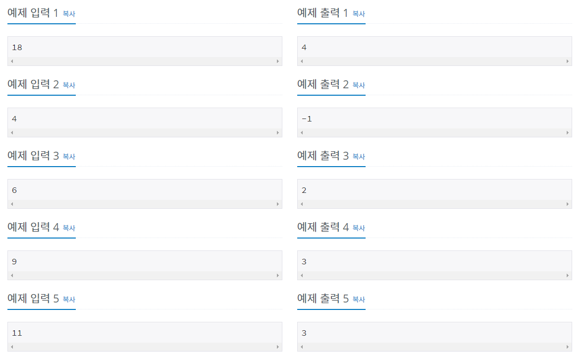 제곱근이 더 큰 경우 작동 횟수는 2*제곱근의 반올림 이다. 이동거리 5의 작동 횟수는 4
